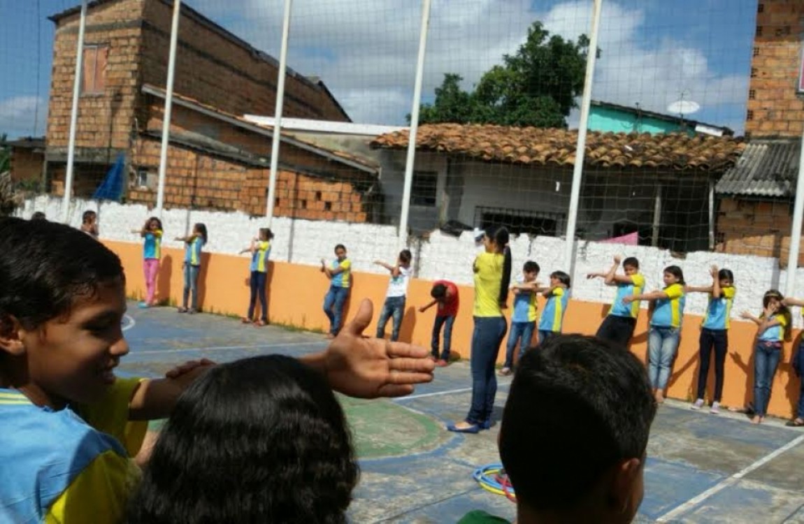 A ação teve consciência corporal e psicomotricidade com a utilização de bambolês e bolas. O trabalho faz parte do Programa Saúde na Escola. A ação do curso de Fisioterapia da Esamaz foi feita em com o Nasf Ananindeua.