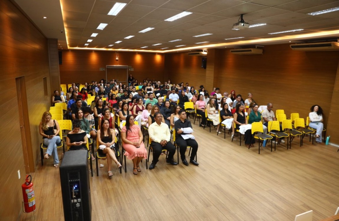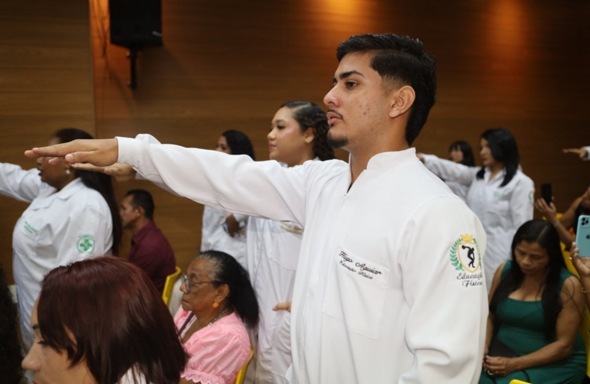 A programação foi organizada em dois momentos, contemplando todos os cursos da área da saúde. A primeira cerimônia ocorreu das 08h às 10h, reunindo os estudantes dos cursos de Biomedicina, Educação Física, Enfermagem, Fisioterapia e Farmácia. Em seguida, das 10h às 12h, foi realizada a segunda cerimônia, com a participação dos acadêmicos de Odontologia, Psicologia, Nutrição e Medicina Veterinária.