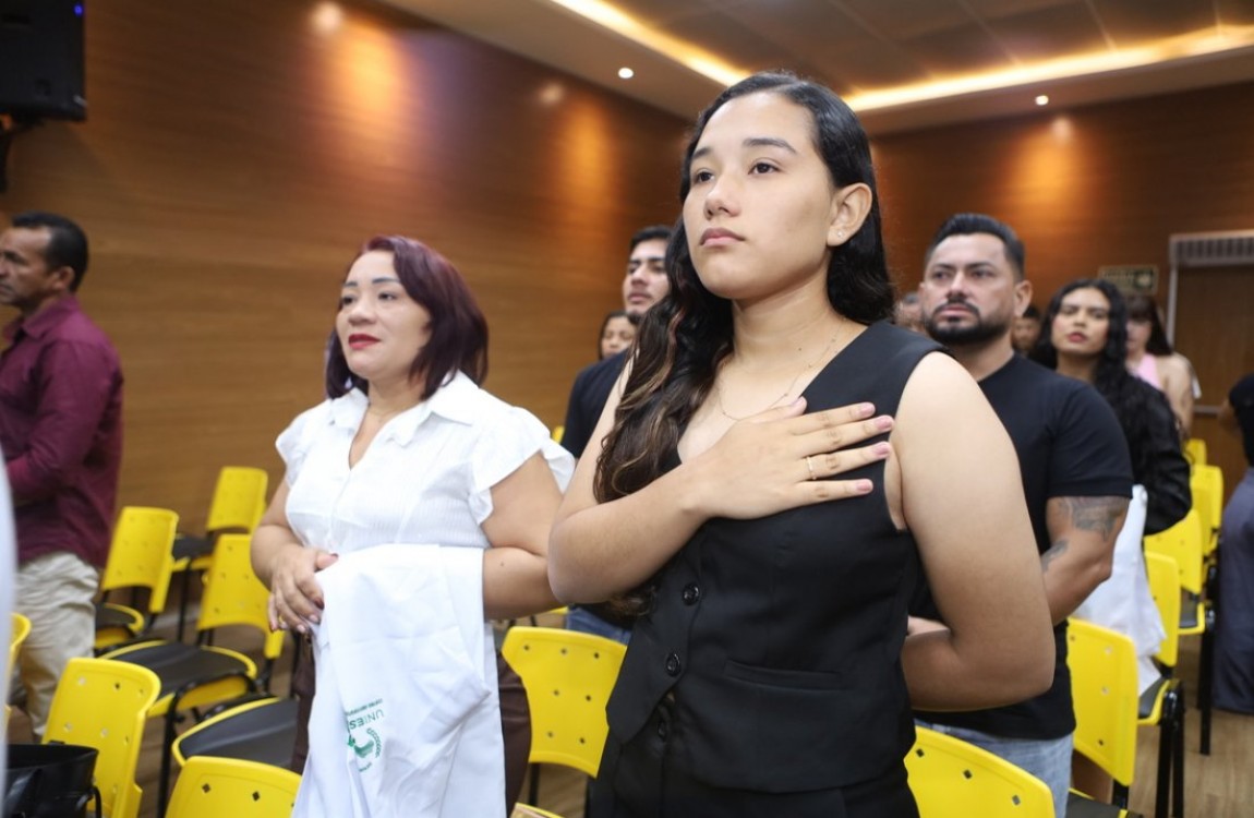 Na última quarta-feira, 01 de abril de 2026, o Centro Universitário da Amazônia – UNIESAMAZ realizou a tradicional Cerimônia do Jaleco dos cursos da área da saúde, no auditório do campus Municipalidade. O evento, que já faz parte do calendário institucional, marcou um momento de grande significado para os acadêmicos que iniciam sua trajetória prática na formação profissional.